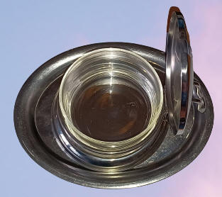 Parmesanglas mit Teller aus Edelstahl 18/10